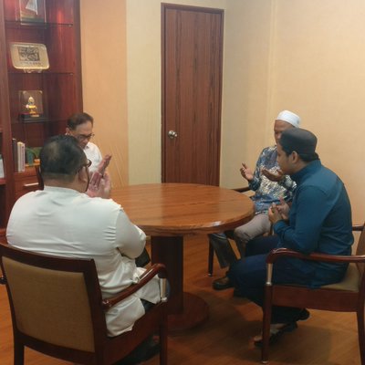 DS @anwaribrahim menerima kunjungan hormat daripada Imam-Imam Masjid Jamek Kampung Baru, Ust Azizi al Hafiz, Ust Asim dan juga Ust Syed Amru di pejabat hari ini.